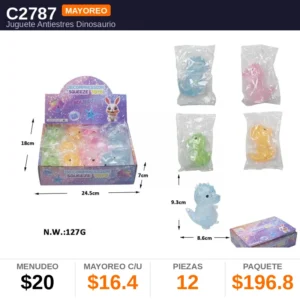 Juguete Antiestres Dinosaurio 10X8X5Cms cantidad