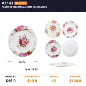 Plato de melamina 23cms 100 gramos cantidad