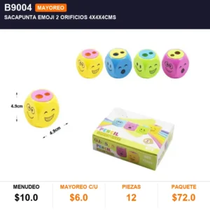Sacapunta emoji 2 orificios 4x4x4cms cantidad
