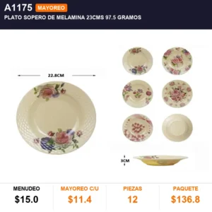 Plato sopero de melamina 23cms 97.5 gramos cantidad