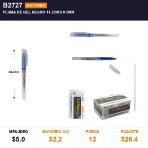PLUMA DE GEL NEGRO 14.2CMS 0.5mm cantidad