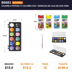 Acuarela pintura 12 colores con 1 borocha en caja de 25×9.5cms