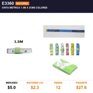 CINTA METRICA 1.5M x 2CMS COLORES cantidad