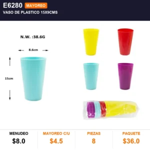 Vaso de plastico 15x9cms cantidad