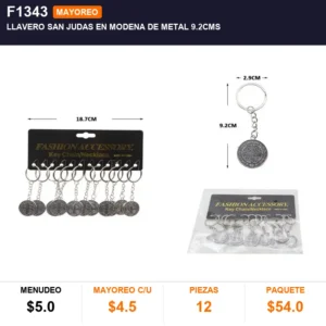 Llavero san judas en modena de metal 9.2cms cantidad