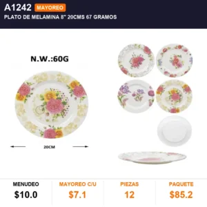 Plato de melamina 8" 20cms 67 gramos cantidad