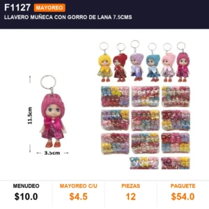 Llavero muñeca con gorro de lana 7.5cms cantidad
