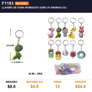 Llavero de goma muñequita 5cms (16 gramos c/u)