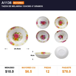 Tazon de melamina 15x4cms 47 gramos cantidad