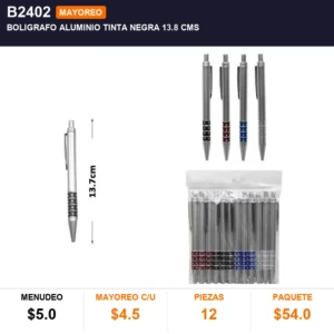 Boligrafo aluminio tinta negra 13.8 cms cantidad