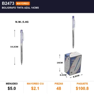 Boligrafo tinta azul 14cms cantidad