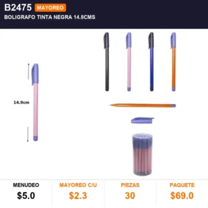 Boligrafo tinta negra 14.8cms cantidad