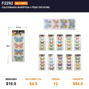 Calcomania mariposa 4 pzas 29x10cms cantidad
