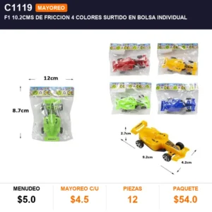 F1 10.2cms de friccion 4 colores surtido en bolsa individual cantidad