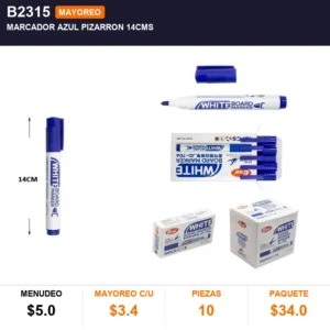 Marcador azul pizarron 14cms cantidad