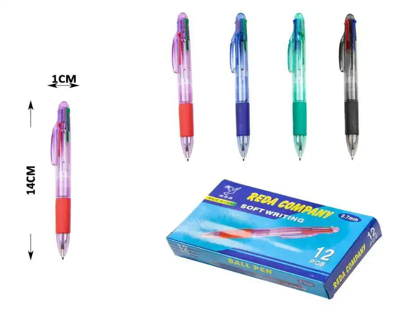 Pluma boligrafo 4 tintas – Pack x12