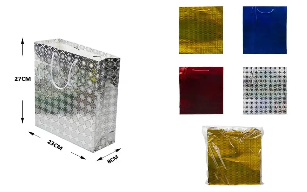 BOLSA METALICA 23 X 27 X 8 CMS,PQT C/12 PZS, CAJA C/80 PQTS