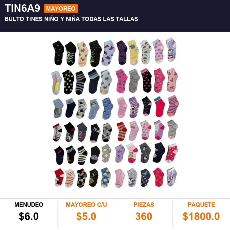 BULTO TINES 350 PZAS NIÑO Y NIÑA TALLAS DE 0 A 12 AÑOS SURTIDOS