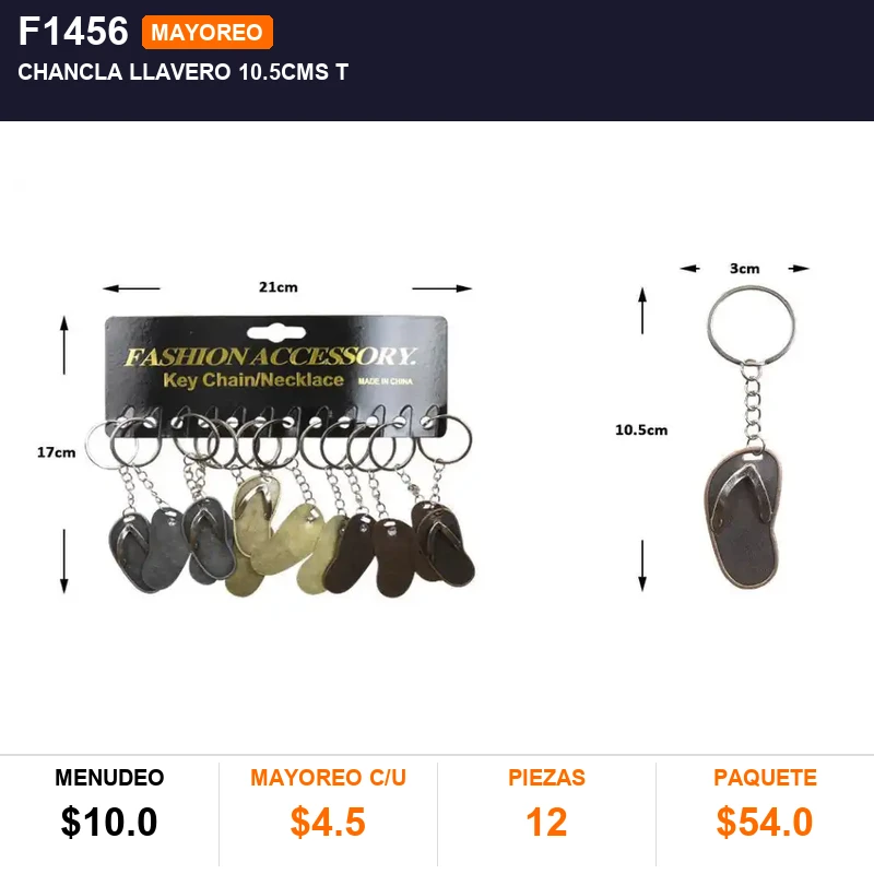 CHANCLA LLAVERO 10.5CMS TOTAL , PQT C/12 PZAS ,CAJA C/10 PQTS