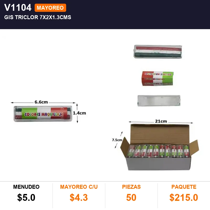 GIS TRICLOR 7X2X1.3CMS , PQT C/50 PZS, CAJA C/20 PQTS
