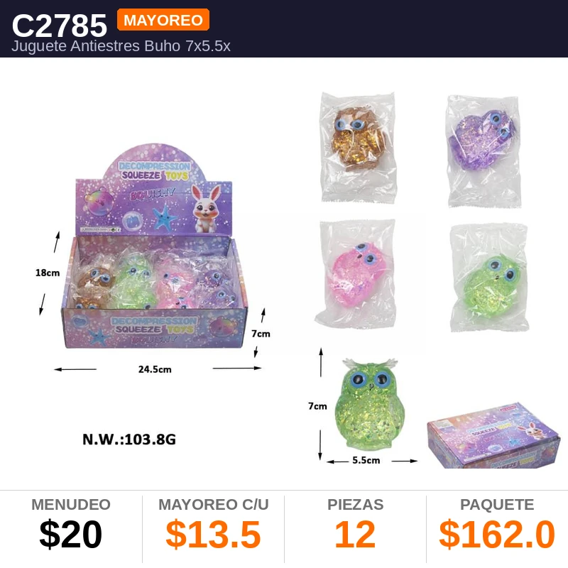 Juguete Antiestres Buho 7X5.5X5Cms