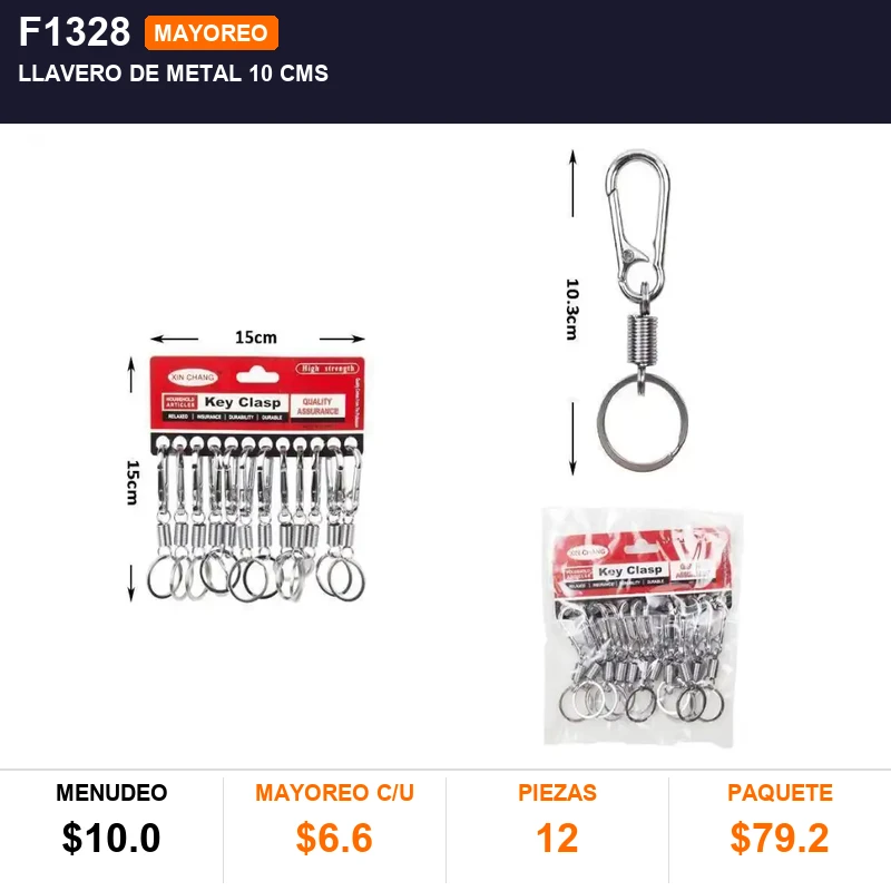 LLAVERO DE METAL 10CMS , PQT C/12 PZAS , CAJA C/100 PQTS