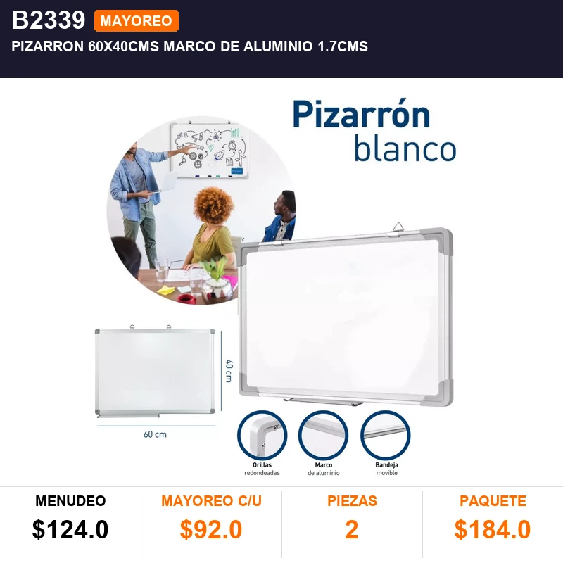 PIZARRON 60X40CMS MARCO DE ALUMINIO 1.7CMS , CAJA C/20 PZAS